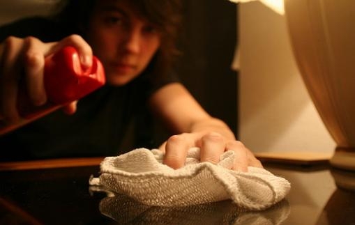 2. Полированная мебель. На этой мебели очень заметны следы пальцев (особенно при дневном свете). Для их устранения нужно протереть поверхность тальком и Ваш шкаф будет как новый. Иные пятна с полированной поверхности следует удалять специальными спреями, после чего, тщательно протереть плюшевым или фланелевым материалом.
