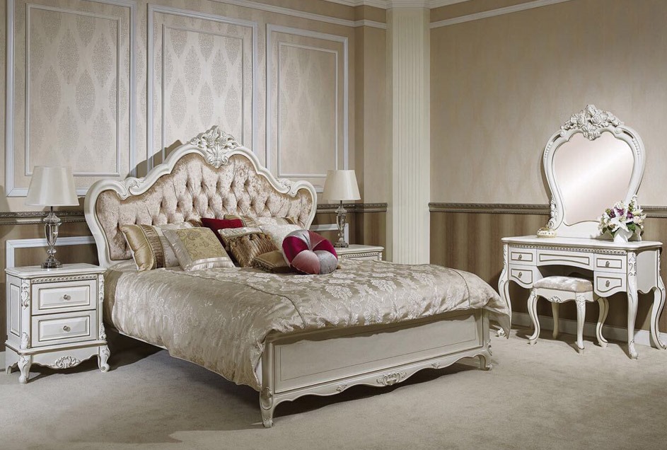 Дизайн спального гарнитура Ирма достоин восхищения и непременно раскроет утонченный вкус и подчеркнёт яркую индивидуальность владельца. Традиционный классический интерьер с декором в стилях барокко, рококо великолепно подойдет для романтичной натуры, которая высоко ценит комфорт, красоту и высокое качество во всем.