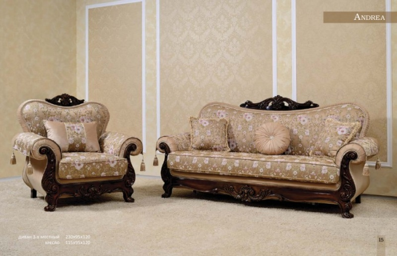 Добавьте в интерьер своей гостиной великолепие классики с диваном и креслом Andrea.