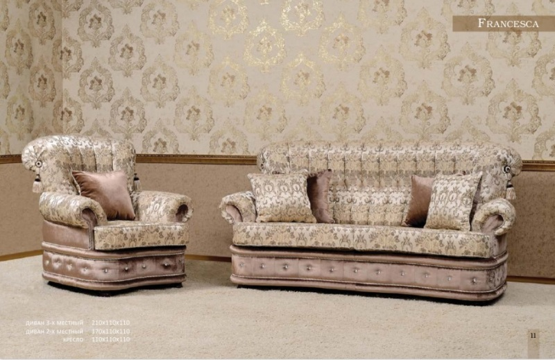 Мягкая мебель серии "Francesca" украсит вашу гостиную и наполнит её особой атмосферой, расслабляющей после суматошного дня. Удобная посадка и мягкие подушки помогут вам быстро восстановить силы. Красивые оттенки обивки дивана создают вкусный интерьер, в котором всей семье будет комфортно и уютно.