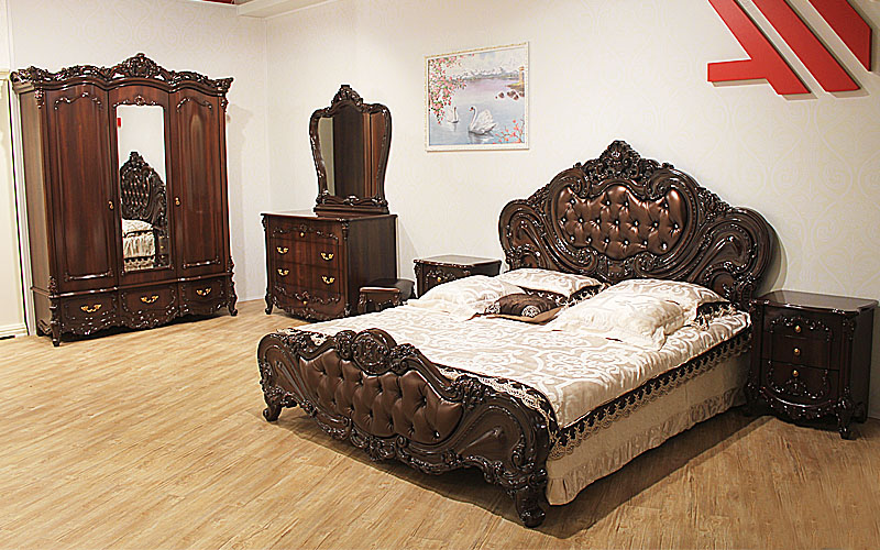 кровать, тумбочки, комод и туалетный столик имеют очень красивые резные