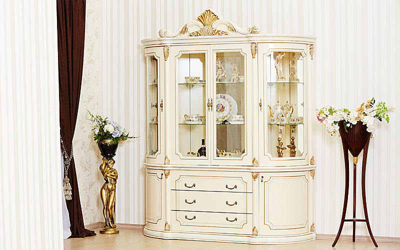 архитектурный декор со сложными спиралями и витыми колоннами . Шкафы, как и