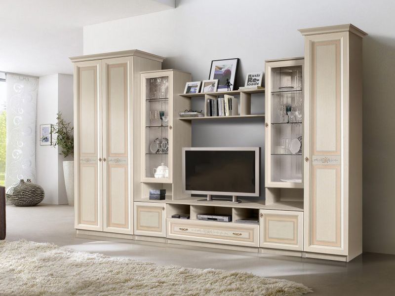 Гостиная «Венеция» отличается лаконичным дизайном. Она отлично подойдёт для помещений в классическом стиле. Неброский дизайн хорошо сочетается и с другими стилями помещений.