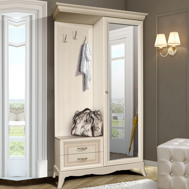 Прихожая «Анна» выполнена в светлых тонах. Лаконичный внешний вид и приятный оттенок не утяжеляют предметы, поэтому мебель придаст помещению лёгкости.