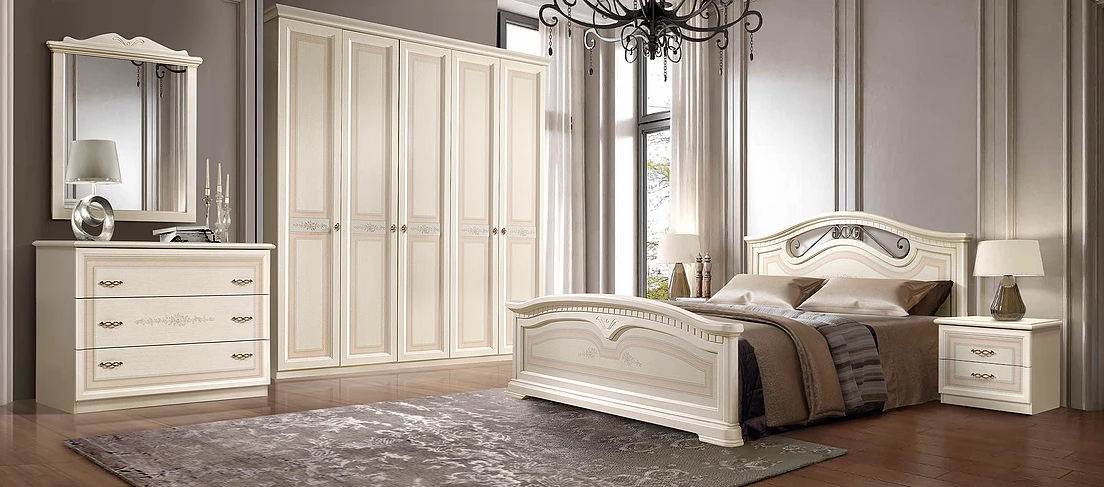 М ебель для спальни Анна - нежная и романтичная, великолепно выполненная классическая мебель для спальни, декорированная лаконичным цветочным орнаментом и кованными элементами.