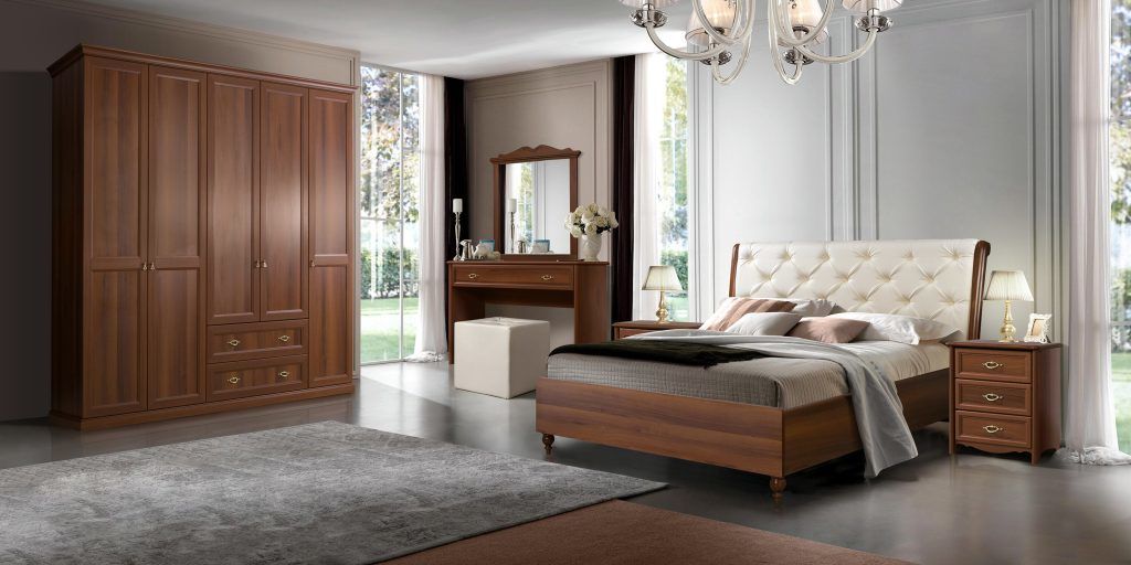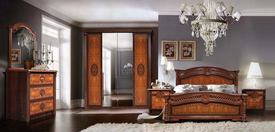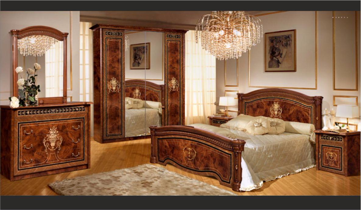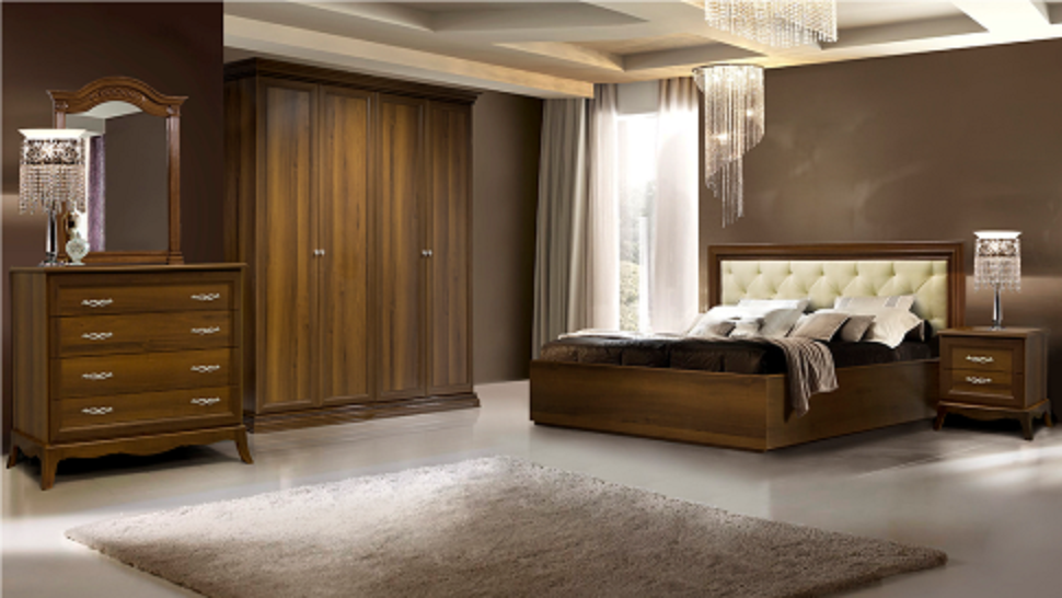 Спальня Венеция (Марроне) выполнена в классическом стиле. Темный оттенок мебели придаёт комнате изысканность и элегантность