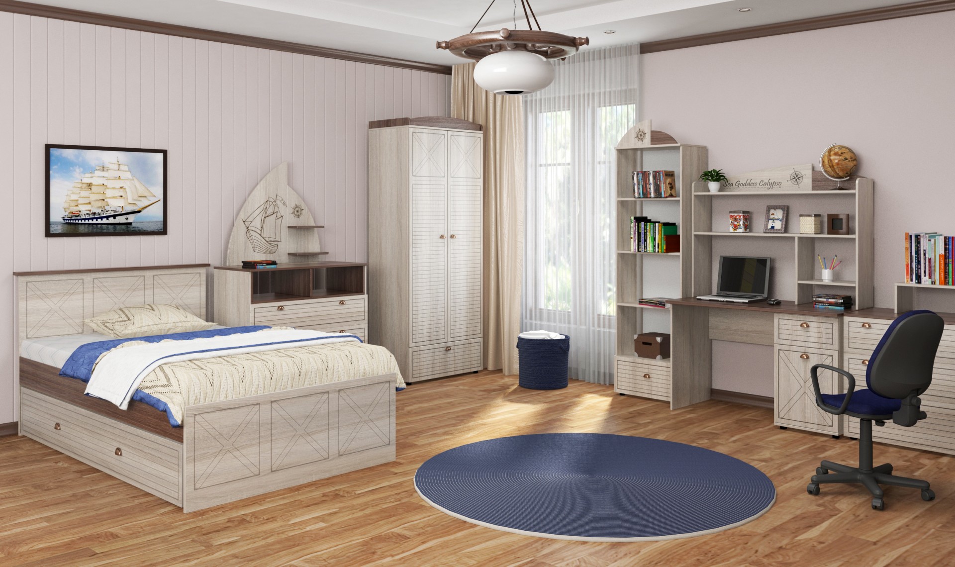 Набор мебели для детской "Робинзон" идеален для мальчиков, увлеченных морскими приключениями, старинными кораблями и пиратами. Стилем напоминает каюту корабля, на котором можно отправиться на поиски сокровищ.