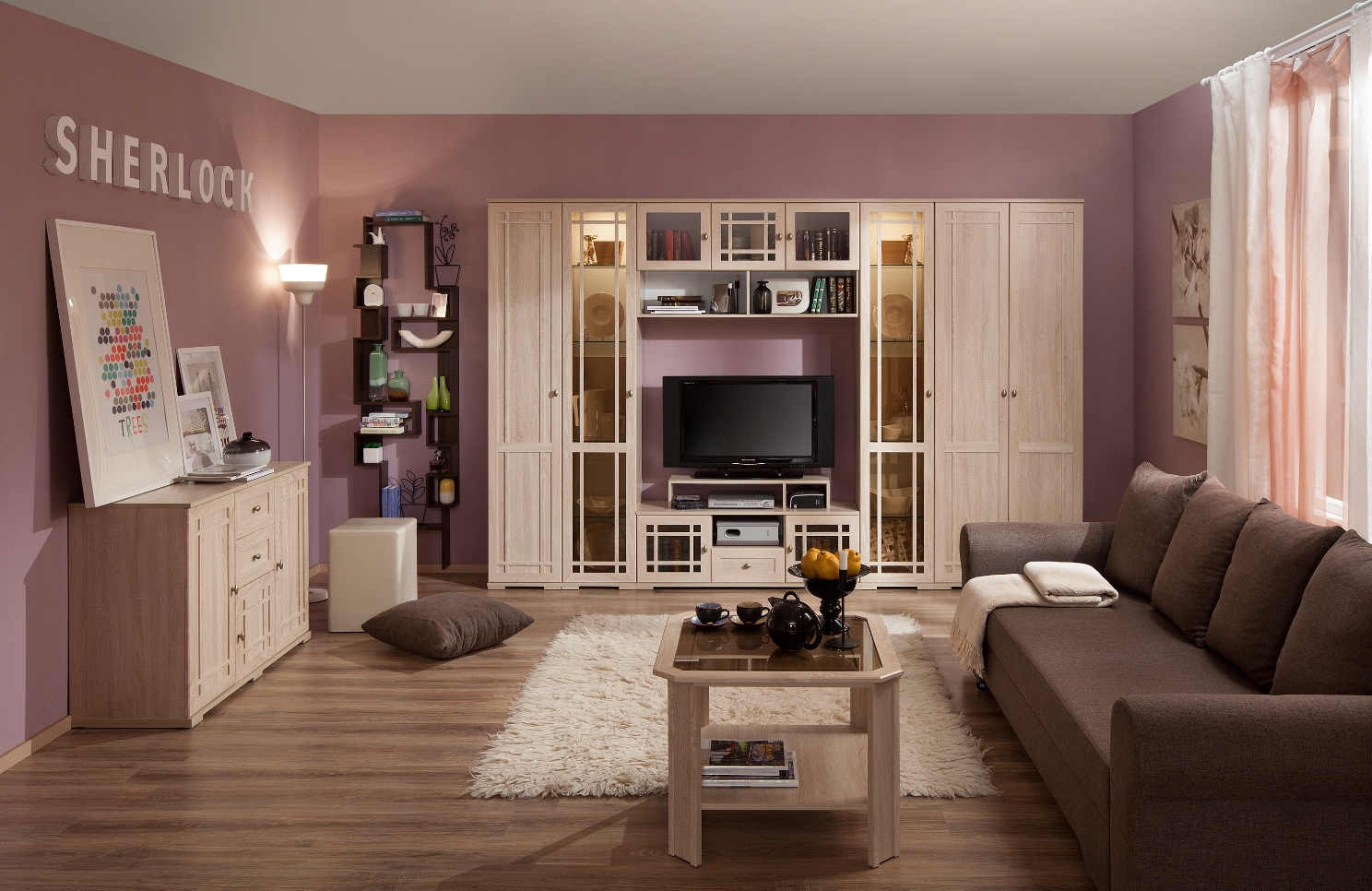 Необычная гостиная «Sherlock» (Шерлок), выполненная в брутальном английском стиле, создаст строгое и правильное настроение времен конца 19 века. Изюминка данной коллекции - это необычные для мебели рамочные фасады, дополненные тонкими накладками, что придает гостиной дополнительный шарм.