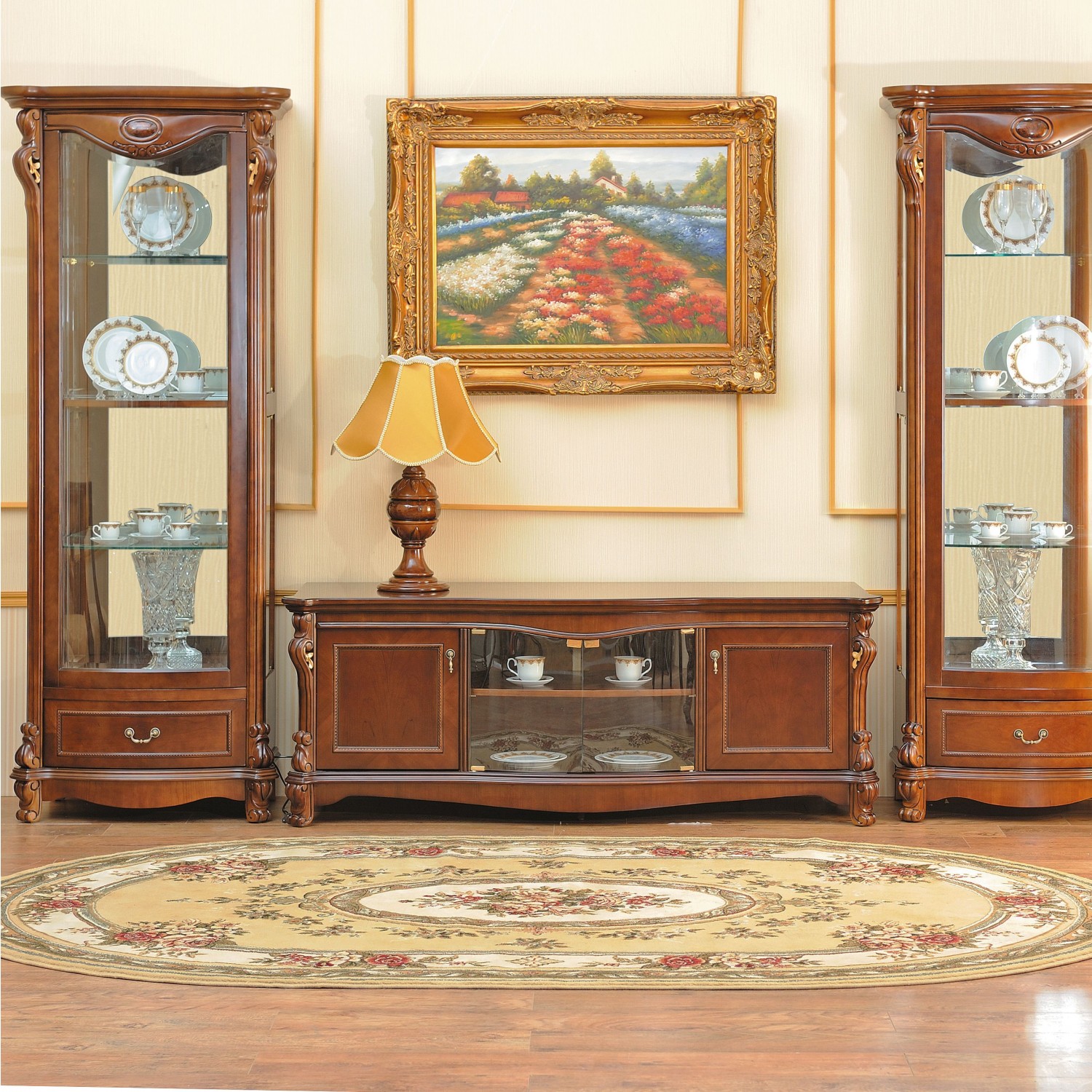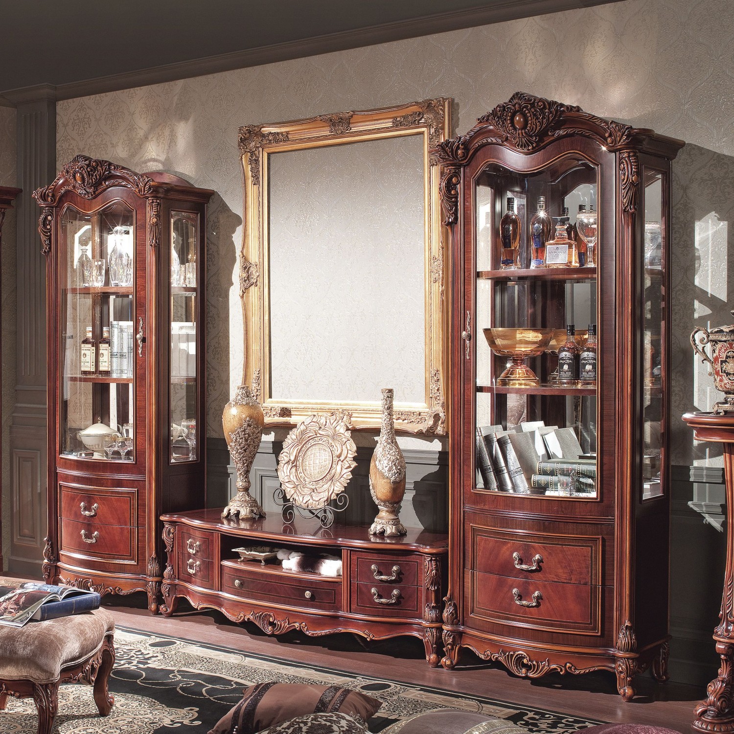 Роскошная, резная и пропитанная удивительной историей прошлых лет мебель для гостиной Aleksandria наполнит ваш дом очарованием и теплотой Востока. Богатство культуры восточных стран воплотилось в каждой детале декора и округлых формах.