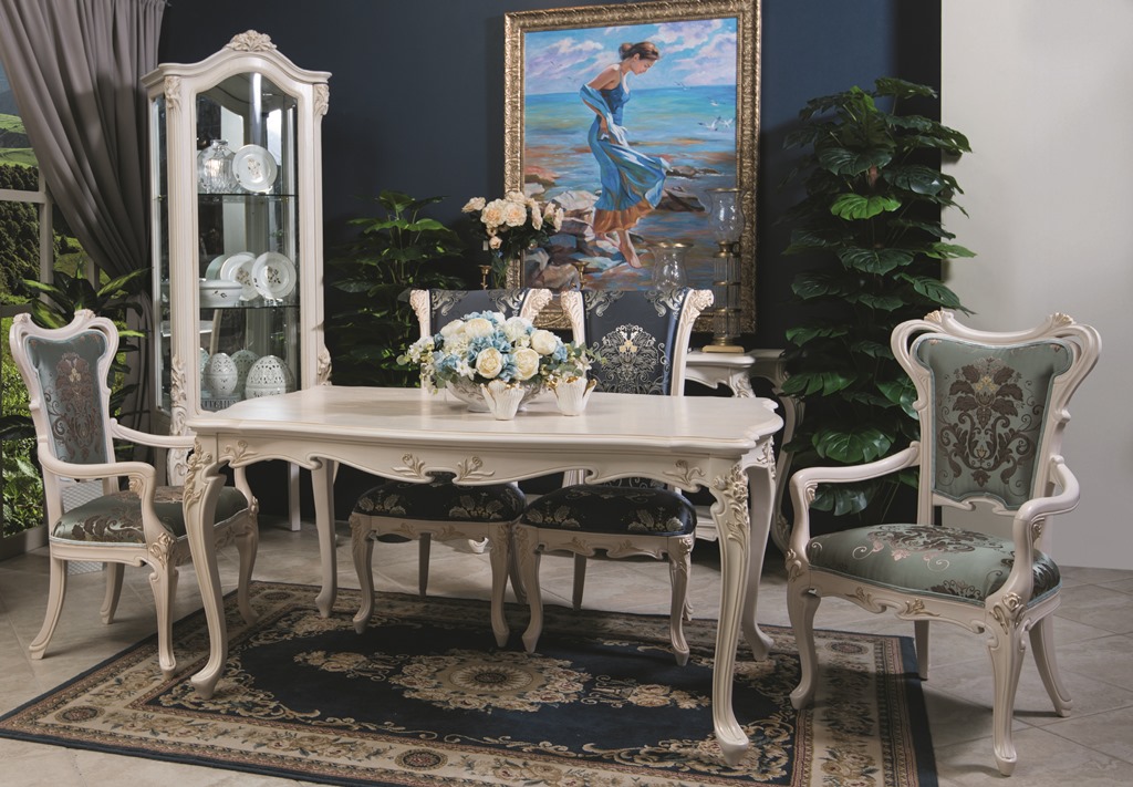 В дизайне столовой Bohemia органично переплетаются элементы таких классических стилей, как Рококо, Барокко. Это мебель для истинных ценителей прекрасного, она создавалась с учетом всех традиционных канонов мебельного искусства. Нежная и элегантная, она создаст обстановку, достойную домов высшего европейского общества.