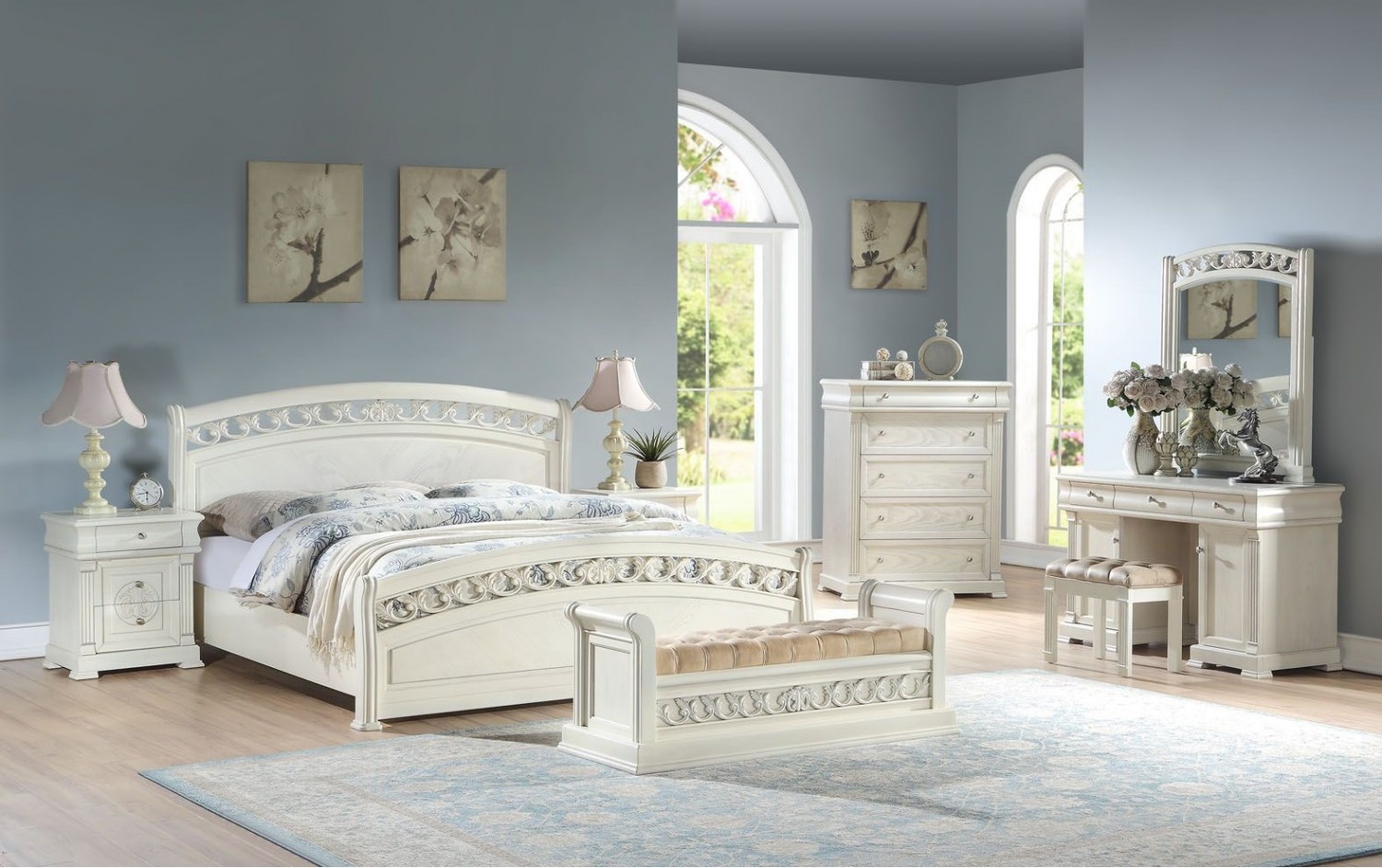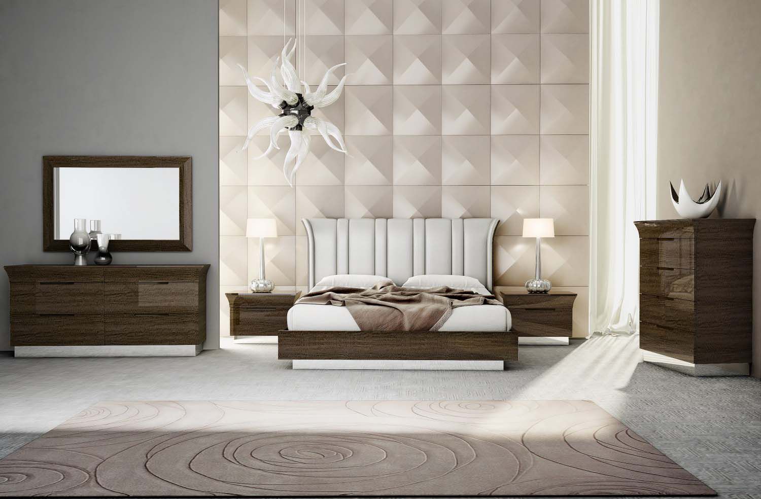 Данная коллекция для спальни очарует вас своей изящностью и легкостью, которая ощущается благодаря прекрасной резьбе по дереву и стильному дизайну. Она выполнена в роскошном современном стиле. Этот набор сможет наполнить комнату элегантностью, шармом и изыском.