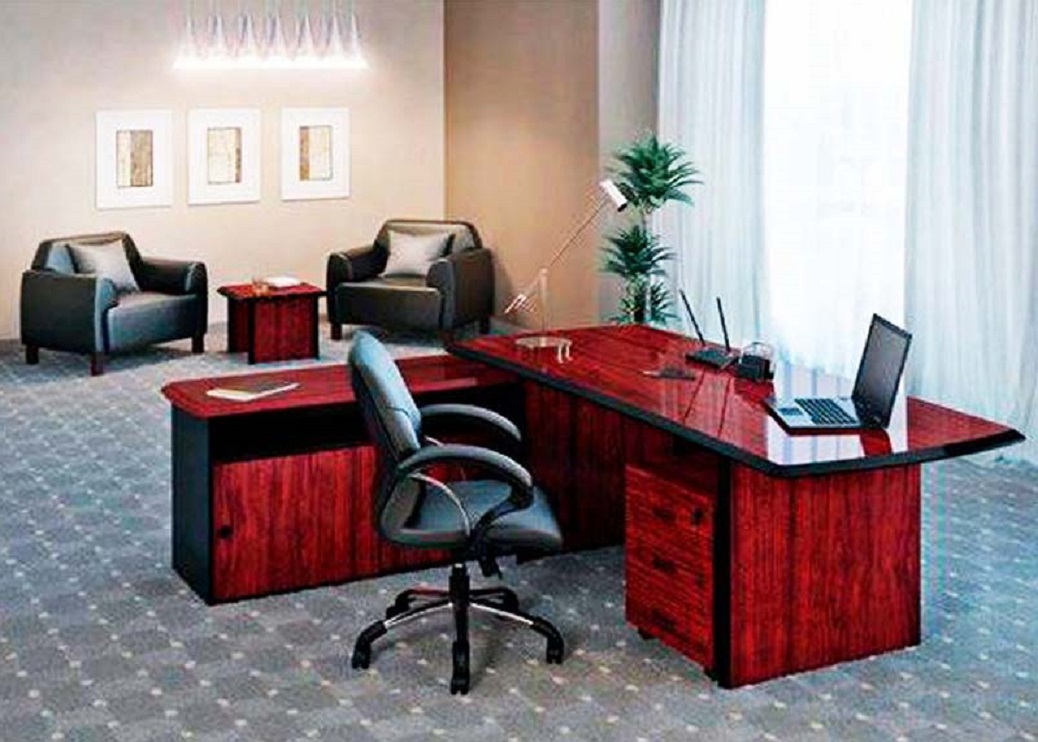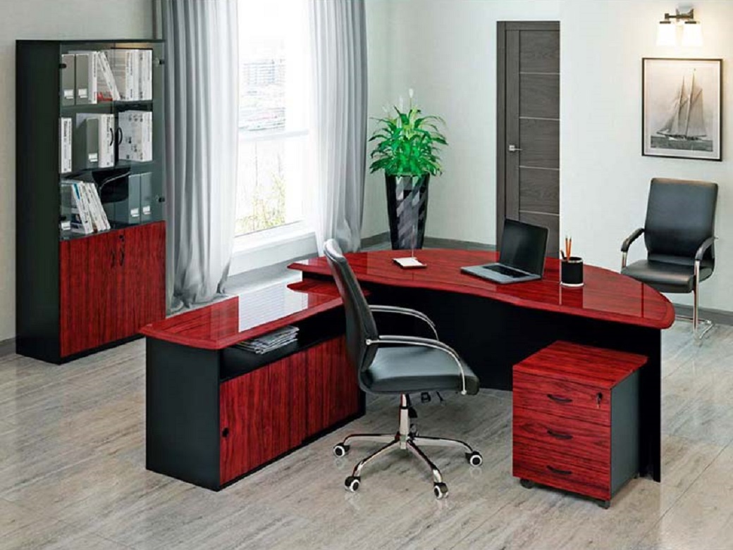 Палитра густо-красного палисандра, покрытого лаком, заключенная в строгую лаконичную форму, как нельзя лучше демонстрирует изысканный вкус и подчеркивает статус владельца кабинета.