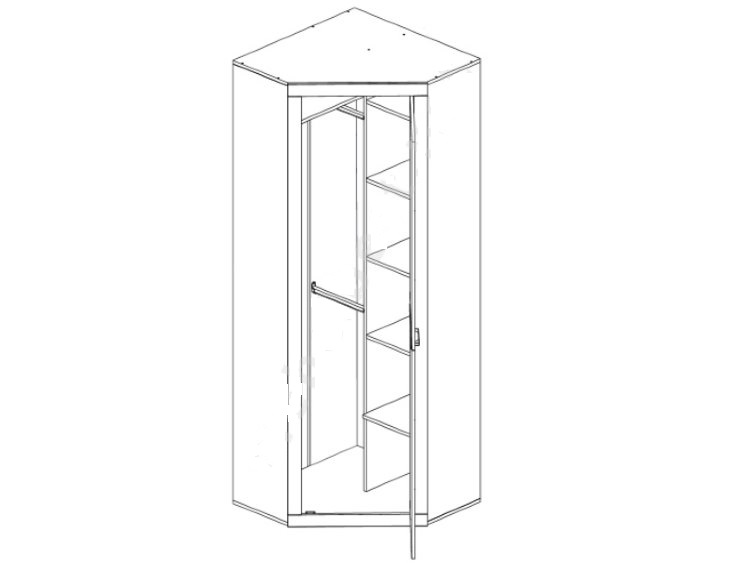 Удобный угловой шкаф Оскар с полками, экономящий пространство в квартире. Небольшие размеры шкафа (78 см в ширину и глубину, 217 см в высоту) позволяют разместить его в комнатах любого размера. Удобное угловое платяное отделение совмещается с полками. Это делает шкаф универсальным в использовании. С двух сторон он может быть дополнен открытым угловым и одностворчатым шкафами с полками или комодом, что создаст законченную композицию. Небольшой угловой шкаф «Оскар» для одежды и белья – это очень удобный вариант для интерьера спальни, прихожей, жилой комнаты или гостиной.