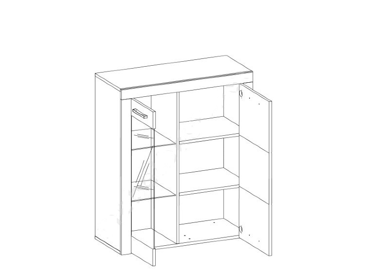 Низкий шкаф-витрина Оскар очень выгодно и стильно будет выглядеть в интерьере, если его разместить на тумбе под телевизор в гостиной или столовой. Высота модуля составляет 98 см, ширина 82 см, глубина 35см. В двух отделениях с полками уместиться посуда и разнообразное белье. А заказав дополнительную опцию подсветки полок, можно получить красивую игру света на хрустале или стекле. Шкаф-витрина изготовлен в цвете натурального дерева “дуб санремо”.