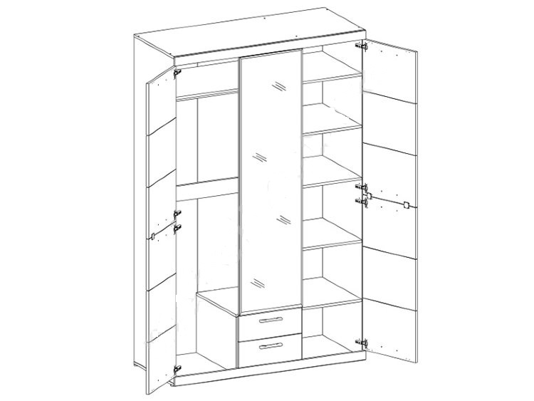 Трехстворчатый шкаф Оскар светлого оттенка “дуб санремо” с зеркалом украсит собой спальню, прихожую или гостиную комнату в стиле кантри, ретро или модерн. Просторное платяное отделение шкафа просто создано для бережного хранения вещей гардероба, на удобных полках в соседнем отделении разместится постельное белье и полотенца. Два выдвижных ящика под большой зеркальной дверцей дополняют конструкцию и функциональность модуля. Шкаф отлично комбинируется в индивидуальную мебельную композицию в сочетании с тумбами, комодами и прочими модулями коллекции Оскар.