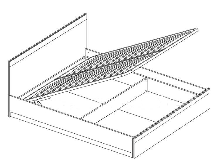 Прочное металлическое ортопедическое основание , деревянные ламели и надежный корпус кровати великолепно дополнены специальным подъемником, превращающим подкроватное пространство в оригинальный горизонтальный шкаф для громоздких вещей или коробок.