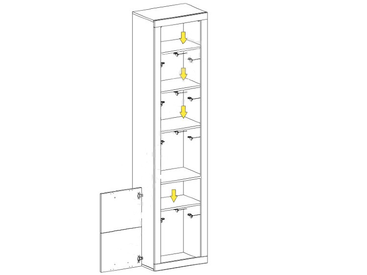 Высокий компактный шкаф Оскар шириной 52см отлично будет смотреться в интерьере спальни, столовой или гостиной комнаты. Сочетая его с другими модулями коллекции, такими как тумба под телевизор, комод или шкаф-витрина, стеллаж, можно создать функциональную, уютную и индивидуальную дизайнерскую композицию у себя в доме. В шкафу есть верхнее и нижнее отделение с полками, на которых в сохранности и чистоте можно хранить столовое белье или вещи. В дизайне шкафа пенал «Оскар» использован модный цвет для корпуса и фасада – «дуб санремо».