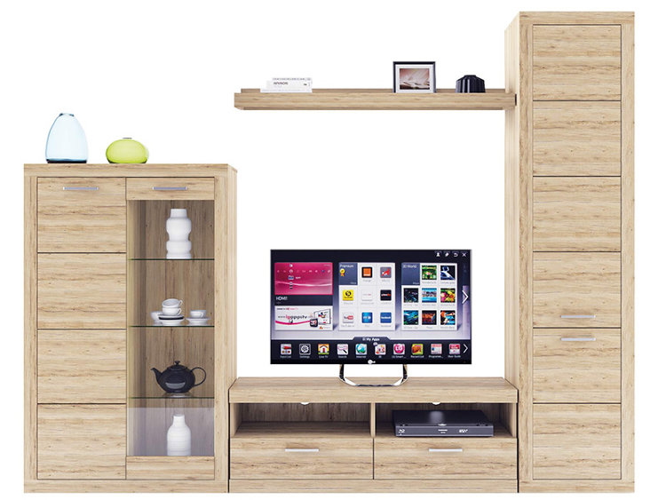 Удобная тумба Оскар под телевизор. Размеры тумбы составляют 130 см в длину, 47 см в высоту и 35 см в глубину. Выгодно обыграв ее размещение в интерьере между шкафами из коллекции модульной мебели Оскар, можно создать индивидуальную и неповторимую обстановку. В тумбе имеются два выдвижных ящика, над каждым из которых есть открытая полка, что способствует удобному размещению дополнительной акустической или видео аппаратуры.