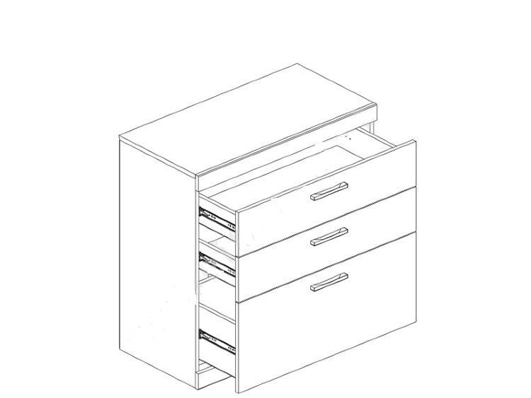 Небольшой удобный комод подойдет для хранения белья или небольших игрушек, вещей или одежды. Три глубоких выдвижных ящика на качественных шариковых направляющих создают плавное движение механизма при открытии и закрытии шуфляд, что делает модуль безопасным даже для маленького ребенка. Размеры комода ( ширина 80 см, высота 81 см и глубина 40 см) позволяют найти ему место даже в небольшой комнате.
