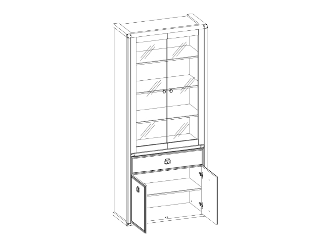 Шкаф с витриной Анрэкс Магеллан 2V2D1S гармонично впишется в интерьер гостиной, рабочего кабинета или обеденной зоны, созданный в винтажном стиле. Шкаф содержит (сверху-вниз): четыре отделения за стеклянными дверцами, выдвижной ящик и два отделения за дверцами внизу, в которых в зависимости от целей использования, вы можете расположить книги, предметы интерьеры, документы, столовые сервизы и т.д. Корпус и фасад модели изготовлены из высококачественной ЛДСП (ламинированной древесно-стружечной плиты), а для отделки декоративных элементов фасада (планки) использована древесно-волокнистая плита МДФ, дополнительная обработка торцов меламиновой и ПВХ-кромкой защитает изделие от проникновения влаги, возможных повреждений и сколов.