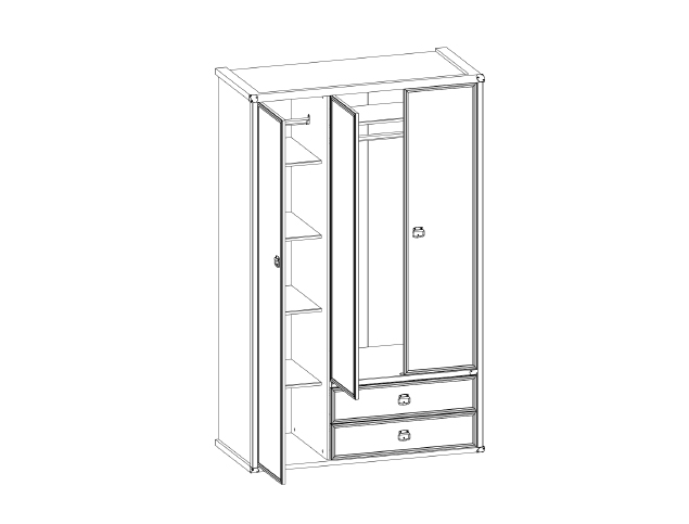 Òðåõñòâîð÷àòûé øêàô Àíðýêñ Ìàãåëëàí 3DG2S ïîäîéäåò äëÿ ñïàëüíè èëè äåòñêîé êîìíàòû, îáñòàâëåííîé â âèíòàæíîì ñòèëå, ãäå íåîáõîäèìî ñîçäàòü ñèñòåìó õðàíåíèÿ îäåæäû. Øêàô ñîäåðæèò (ñëåâà-íàïðàâî): áåëüåâîå îòäåëåíèå, ñîñòîÿùåå èç ïÿòè ÿ÷ååê, ïëàòÿíîå îòäåëåíèå ñ âåðõíåé ïîëêîé, øòàíãîé äëÿ âåøàëîê è äâà âûäâèæíûõ íèæíèõ ÿùèêà. Êîðïóñ è ôàñàä ìîäåëè èçãîòîâëåíû èç âûñîêîêà÷åñòâåííîé ËÄÑÏ (ëàìèíèðîâàííîé äðåâåñíî-ñòðóæå÷íîé ïëèòû), à äëÿ îòäåëêè äåêîðàòèâíûõ ýëåìåíòîâ ôàñàäà (ïëàíêè) èñïîëüçîâàíà äðåâåñíî-âîëîêíèñòàÿ ïëèòà ÌÄÔ, äîïîëíèòåëüíàÿ îáðàáîòêà òîðöîâ ìåëàìèíîâîé è ÏÂÕ-êðîìêîé çàùèòàåò èçäåëèå îò ïðîíèêíîâåíèÿ âëàãè, âîçìîæíûõ ïîâðåæäåíèé è ñêîëîâ.