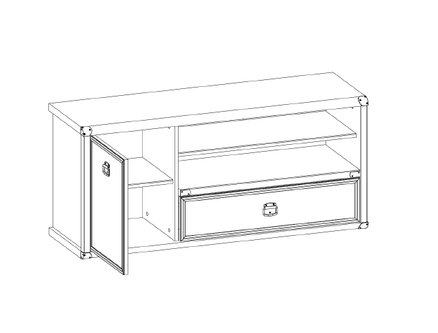 Тумба Анрэкс Магеллан RTV 1D1S2N дополнит интерьер гостиной комнаты, созданный в винтажном стиле и станет удобным функциональным предметом мебели, где вы сможете разместить плазменную TV-панель и другие необходимые вещи и предметы. Тумба состоит из столешницы, шкафчика с двумя отделениями, двух открытых ниш и выдвижного ящика. Корпус и фасад модели изготовлены из высококачественной ЛДСП (ламинированной древесно-стружечной плиты), а для отделки декоративных элементов фасада (планки) использована древесно-волокнистая плита МДФ, дополнительная обработка торцов меламиновой и ПВХ-кромкой защитает изделие от проникновения влаги, возможных повреждений и сколов.