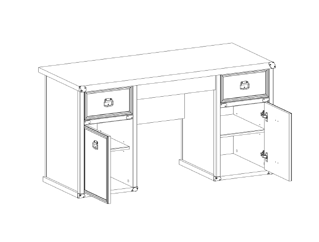 Стол письменный Анрэкс Магеллан 2D3S гармонично впишется в винтажный интерьер спальни, рабочего кабинета или гостиной комнаты, где необходимо обустроить место для работы с документами или ПК. Просторная столешница позволяет с легкостью разместить большое количество нужных бумаг, документов и канцелярских принадлежностей, а при необходимости расположить ПК или ноутбук; стол также имеет два вместительных шкафчика с двумя отделениями в каждом и два выдвижных верхних ящика.