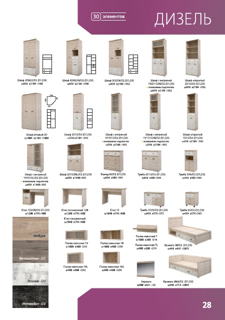 Комплект для молодежной Дизель Anrex состоит из следующих элементов: