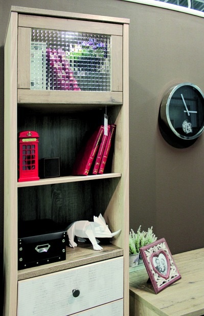 Шкаф с витриной 1V1D1S2N/D2 энигма Дизель гармонично впишется в интерьер молодежной комнаты. Шкаф содержит (сверху-вниз): одно отделение за стеклянными дверцами, два открытых отделения, выдвижной ящик и одно отделение за дверцей внизу, в которых в зависимости от целей использования, вы можете расположить книги, предметы интерьеры, документы и т.д. Корпус и фасад модели изготовлены из высококачественной ЛДСП (ламинированной древесно-стружечной плиты), а для отделки декоративных элементов фасада (планки) использована древесно-волокнистая плита МДФ, дополнительная обработка торцов меламиновой и ПВХ-кромкой защитает изделие от проникновения влаги, возможных повреждений и сколов.