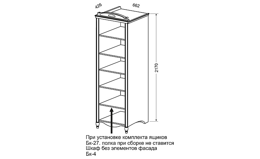 Ñîñòîèò èç àðòèêóëîâ: êîðïóñ ñòåëëàæà ñ ïîëêàìè Áê-04 äâåðü Áê-26Ï (2 øò.) .