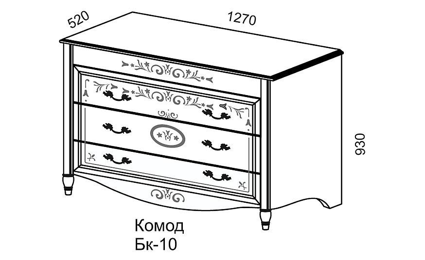 Комод с тремя ящиками из коллекции Barocco. Декоративная шелкография, изящные линии - украшение коллекции.