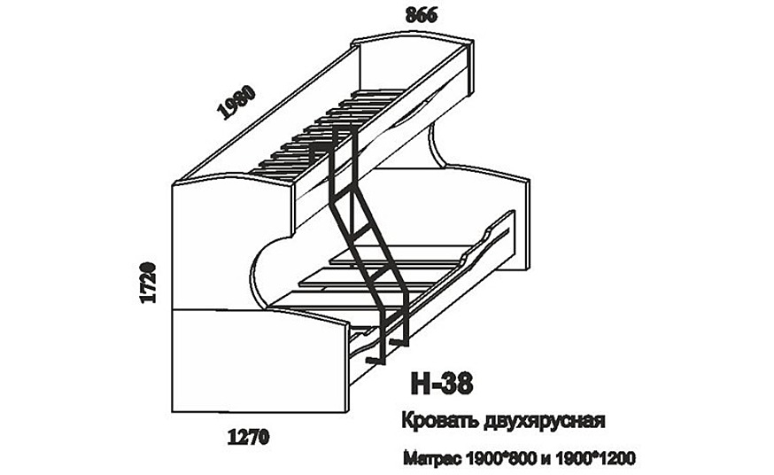 Кровать двухярусная Н-38 (размер матраса 1900х800/1900х1200) NAUTILUS