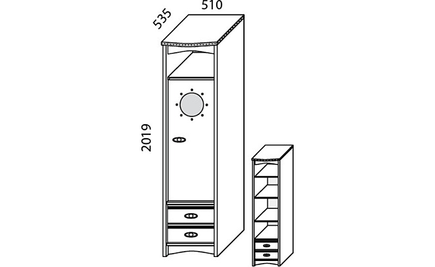 Шкаф с двумя ящиками из коллекции Nautilus. Украшение коллекции - пластиковая кромка "дуо" с рисунком тату. Фурнитура Hettich, Германия.