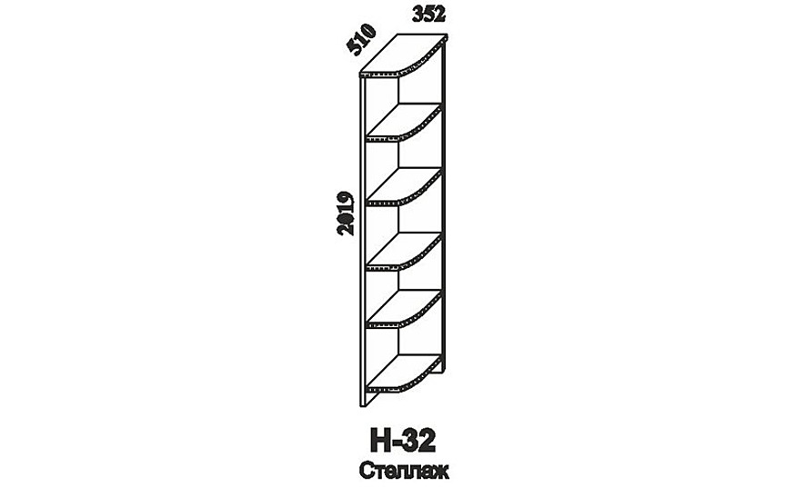 Стеллаж угловой из коллекции Nautilus. Стеллаж Н-32 с четырьмя открытыми веерными полками. Отличное решение для мелочей и статуэток.
