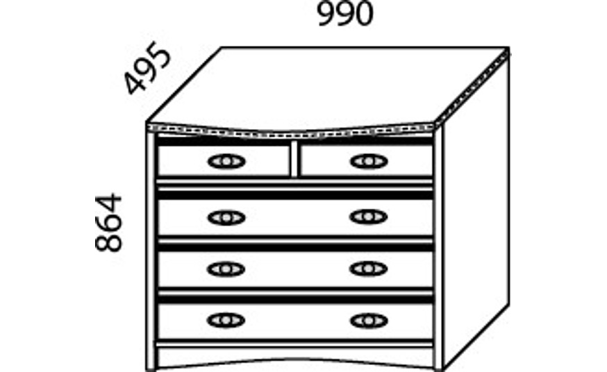 Комод Н-11 с двумя верхними маленькими выдвижными ящичками и тремя нижними выдвижными ящиками.