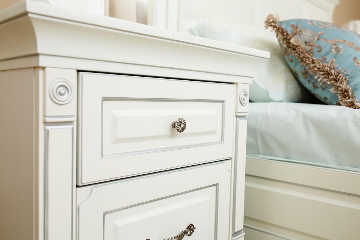 Тумба прикроватная «Александрия» гармонично сочетает в себе красоту и элегантность лучших материалов, воплощенных в стогом дизайне. Белый цвет и легкая патина - придают благородство и солидность.