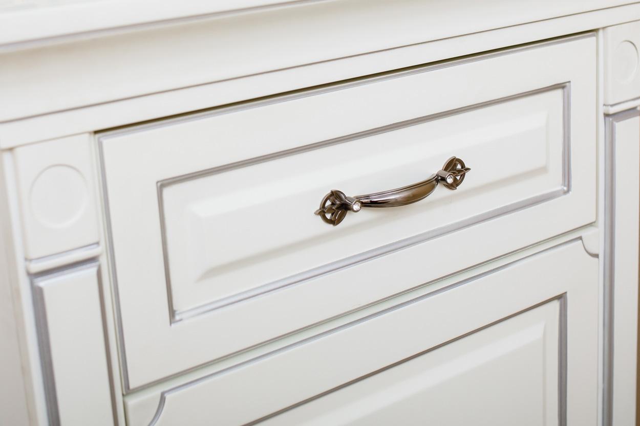 Удобство и практичность – основные черты этой модели, благородство белого цвета и легкая патина придает этой модели строгость и элегантность. Ручное патинирование декоративных элементов — трудоемкий процесс, требующий особой аккуратности. Патина наносится для придания контраста и глубины цвета. Это отличный способ сделать мебель по-настоящему уникальной и подчеркнуть красоту фасада.