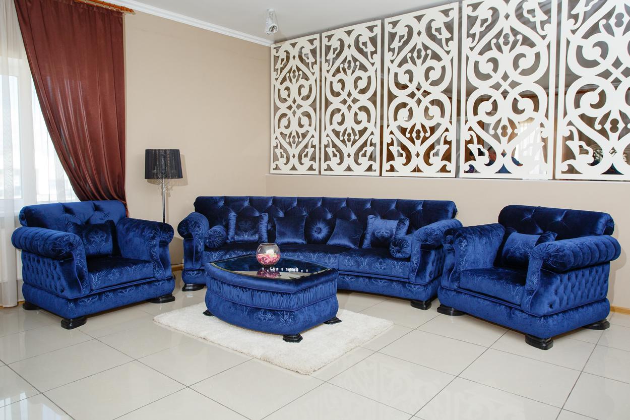 Сочетает в себе комфорт и удобство с роскошью высококачественных материалов и эстетичностью элементов декора. В зависимости от выбранной обивочной ткани подбираются бахрома, украшающая контуры сидений, декоративные шнуры и тесьма. Также модель дополнена подушками различной формы и размеров. Самый популярный вариант исполнения - два кресла, диван, пуф. Варианты исполнения: без тесьмы и бахромы, с тесьмой и бахромой. Стоимость уточняйте у менеджера!
