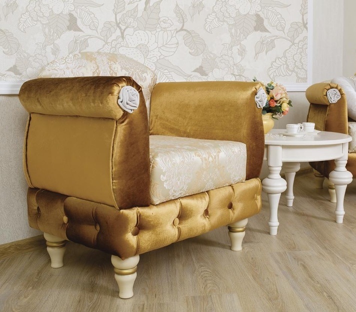 Элегантное кресло «Элизабет» привнесет настоящую роскошь и дополнит интерьер в классическом стиле. Текстильная обивка выполнена из высококачественной ткани. Каркас и ножки из твердых пород древесины.