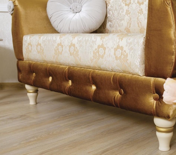 Элегантная мебель «Элизабет» привнесет настоящую роскошь и дополнит интерьер в классическом стиле. Текстильная обивка выполнена из высококачественной ткани. Каркас и ножки из твердых пород древесины. Различные вариации данной модели помогут обустроить и украсить Ваш дом. В набор входит: банкетка с боковинами и спинкой и два кресла.
