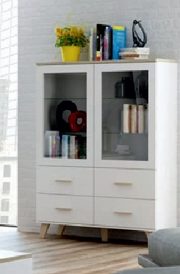 Модульная серия Ларго - это лаконичность и изысконность Вашего дома. Белые фасады придадут больше света в комнате. Шкаф имеет выдвижные ящики и стеклянные двери за которыми полки из стекла.