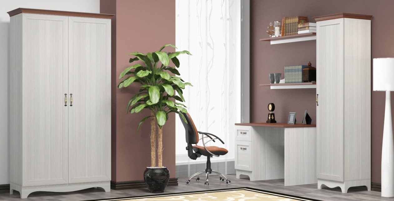 Модульная серия "Вентура" - современная классика у вас дома. Особый шарм, красота серии Вентура выгодно подчеркивают тонкий вкус и чувство прекрасного у ее владельца. Стол письменный имеет выдвижной ящик и тумбу с полкой. К столу письменному ИД 01.88 дополнительно приобретается Полка для книг ИД 01.198.