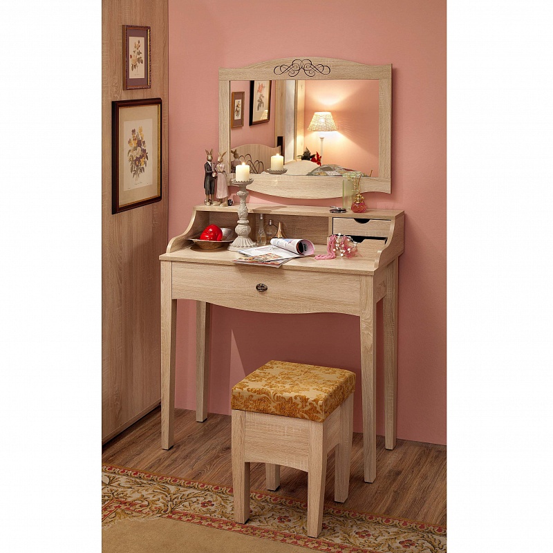 Большие кресла уютны, но занимают много места. В маленькой спальне уместнее поставить небольшую аккуратную банкетку. Прочные опоры банкетки и основная деталь сидения из толстой плиты (22 мм) позволят комфортно совершать утренний макияж у туалетного столика.
