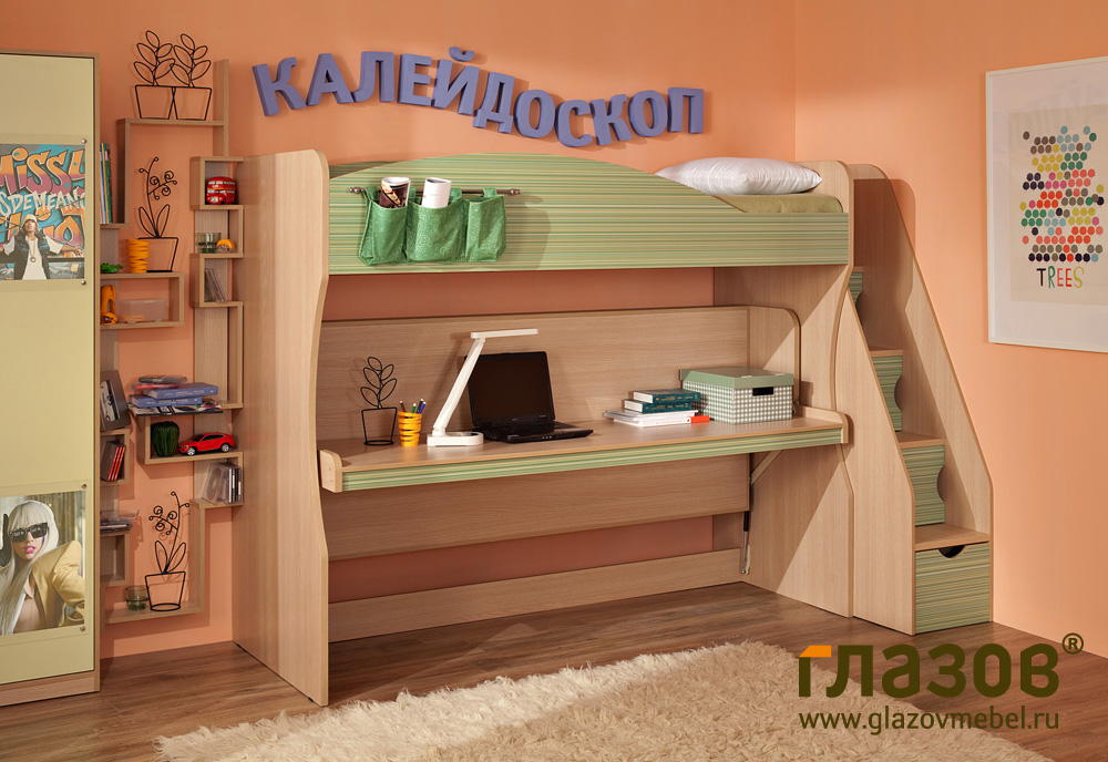- Экономия пространства детской комнаты на площади 1,9 м2 сейчас возможно разместить полноценную 1 или 2 -ярусную кровать и просторное рабочее место; - Инновационный механизм трансформации который позволит легко перевести кровать в положение «Стол» и обратно. Справиться с этим сможет даже ребенок; - Легкость подъема обеспечивает газовый лифт механизма с усилием в 800 Ньютонов. - Надежные фиксаторы ; - Предусмотренный зазор (10мм) между стенкой кровати и столешницей позволяет провести провода от ноутбука и другой техники к сети 220 В и трансформировать стол в кровать, не отключая технику от электросети. - Усиленное дно (ребра жесткости из ЛДСП 18 мм, конструкция выдерживет нагрузку до 80 кг); - Декор царг на выбор : Зеленая или Серая радуга. Оба декора идут в комплекте и переставляются по желанию под цвет выбранного фасада.