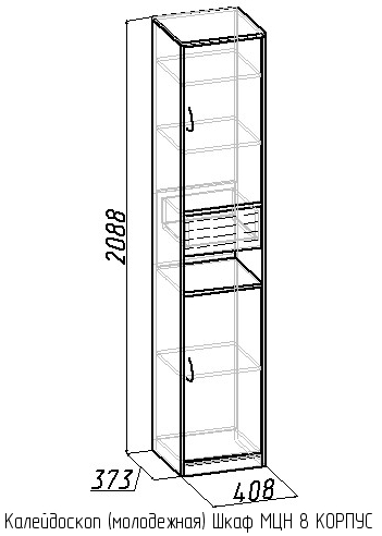 Шкаф многоцелевого назначения Калейдоскоп условно разделен на три части. Центральная часть представлена небольшой нишей и одним выдвижным ящиком для книг и журналов. В верхней части за дверцей скрываются две полки, а в нижней части - одна полка. Вместительный и яркий шкаф идеально впишется в любой интерьер детской комнаты. Такая модель подойдет для детей как младшего возраста, так и более старшего.