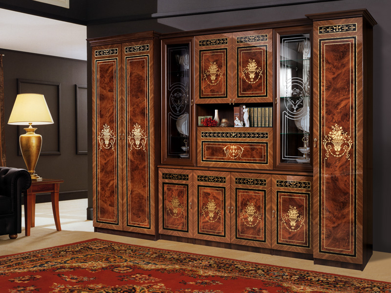 Модульная мебель для гостиной «Карина-3» от компании «Ярцево-Мебель» покоряет глянцевыми фасадами и роскошными цветовыми решениями («орех» и «беж»). Выполненный в венецианском стиле гарнитур мебели станет главным украшением вашего загородного дома или городских апартаментов. Классический итальянский дизайн мебели никогда не покинет модного пьедестала и с присущим ему достоинством «вольется» в самые разные интерьеры. При этом мебель «Карина» порадует своего владельца не только неординарной внешностью, но и функциональностью – дизайнеры продумали каждую мелочь, снабдив свое творение вместительными шкафами, витринами с шикарными витражами, удобной секцией с баром и практичной тумбой под телевизор. Все элементы мебели изготовлены из высококлассной ДСП, покрытой экошпоном и рамочными фасадами из МДФ, дополнено фурнитурой от ведущих производителей Европы. Такая гостиная мебель справится со всеми задачами, которые вы перед ней поставите, будь то хранение одежды, размещение аппаратуры, посуды, предметов декора и т.д. У гостиной мебели «Карины-3» есть все шансы создать в вашей столовой атмосферу уюта и тепла, сделав акцент на изящном вкусе владельцев дома. Этому особенно способствует великолепный рисунок, нанесенный на лицевые поверхности мебели методом шелкографии. Искусно имитируя инкрустацию ценными породами древесины, он делает гарнитур элегантным, изысканным, благородным и «богатым», вызывая сомнения в его истинной стоимости.