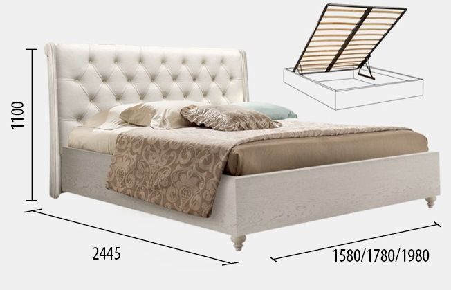 Широкая двуспальная кровать гарантирует комфортный сон и полноценный отдых. Подъёмный механизм делает её функциональной, так как позволяет использовать пространство под кроватью для хранения вещей. Дизайн выполнен в классическом стиле. Мягкое изголовье выглядит дорого и придаёт кровати особый шик. Такая кровать станет украшением любого интерьера.