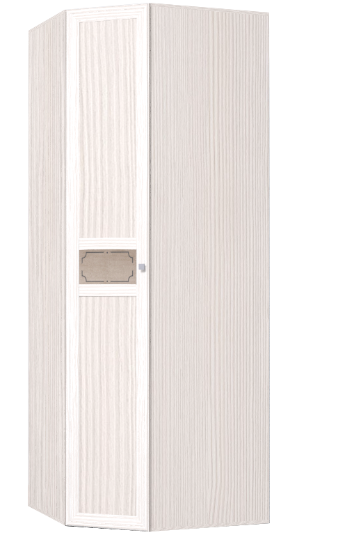 Рационально использовать углы в спальне можно при помощи углового шкафа для одежды. Благодаря тому, что основной объем шкафа находится в углу, он не выглядит громоздким, но при этом остается очень вместительным. Стационарная штанга длиной 817 мм позволит содержать в порядке верхнюю одежду всей семьи. Полки на боковом стеллаже регулируются по высоте, их глубина составляет 422 мм. Шкаф оснащен автоматической светодиодной подсветкой, которая включается только при открытой двери шкафа. Это особенно удобно, если нужно найти в шкафу вещи, не потревожив близких. Установить такой светильник стало еще проще, потому что он крепится на крышку шкафа на магнитах - и не нужно возиться с проводами! При израсходовании заряда, его легко снова зарядить от сети 220 В. Шкаф крепится к стене за подвесы. Регулируемые опоры помогут компенсировать небольшие неровности пола. Рамочный фасад МДФ украшен декоративной накладкой, обитой той же велюровой мягкой тканью, что и изголовье кровати Карина. Выпуклый рельеф на вставке также гармонирует с фигурным силуэтом изголовья. Видимую боковину шкафа можно украсить с помощью стеллажа Twist или придать ей функциональности, навесив вешалку Mini с металлическими крючками.