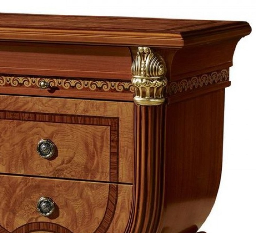 Спальня Imperiale II выполнена в стиле Ампир. Ведь именно по канонам Ампира выстроены интерьеры дворцов французских и российских императоров. Они величественны и монументальны, им присуща официальная парадность и строгость. Мебель в стиле Ампир тяготеет к официальной парадности. Ей чужды мелкие формы, женская изысканность и витиеватость.
