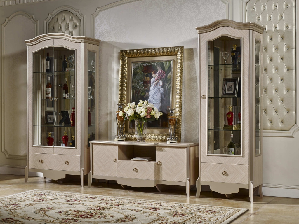 Практичная 3-дверная напольная горка Chloe отличается элегантностью дизайна. Стилистику классицизма, её строгие и пропорциональные формы предпочитают люди состоявшиеся, обеспеченные, обладающие изысканным вкусом. Бежевый цвет, в котором выполнен корпус мебели, способствует адаптации к интерьеру в любой тональности.
